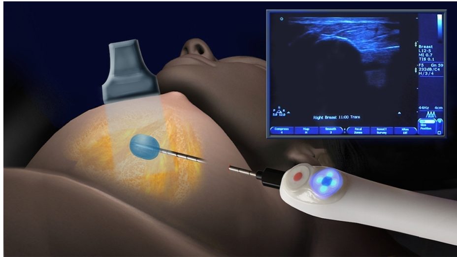 After local anesthesia +/- sedation, under ultrasound guidance a specialized probe is precisely positioned within the fibroadenoma and the treatment is performed. The procedure takes about 45-60min. It is a day-care procedure and patients go back home same-day. Recovery is quick. Mild soreness or bruising may occur for a few days. There are no stitches, and most patients return to normal activities within 24–48 hours.