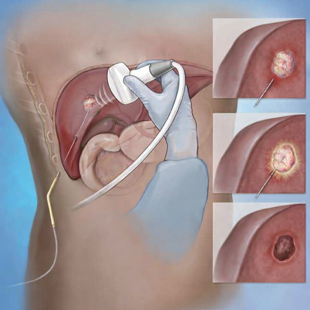 Image-guided cancer ablation is performed through a tiny skin puncture, without any surgical incision.