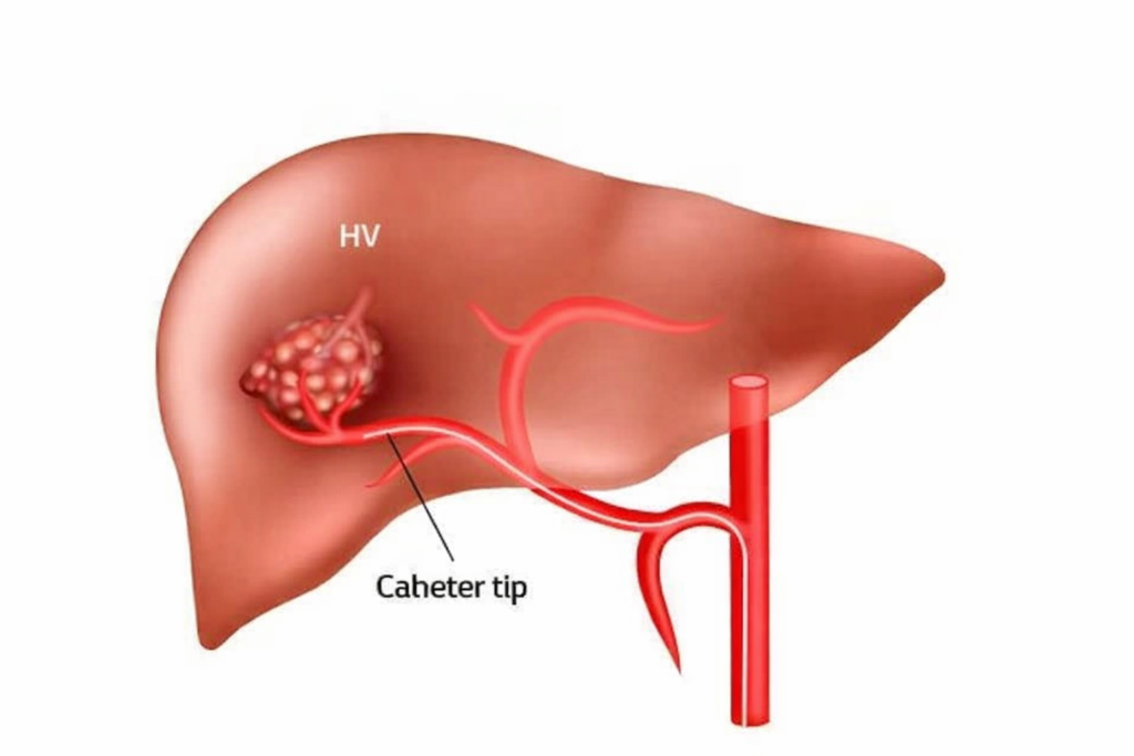 During the procedure, chemotherapy is delivered directly into the tumor-feeding arteries, followed by embolic agents that reduce blood flow. This traps the chemotherapy within the tumor and deprives it of oxygen and nutrients, limiting tumor growth while reducing systemic side effects.